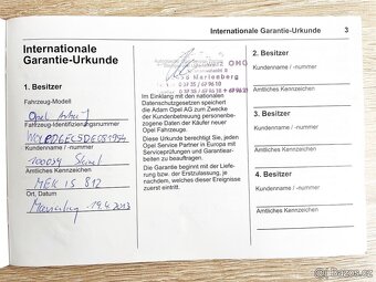 Vozidlo zakoupeno jako nové i ojeté u autorizovaného dealera OPEL Autohaus Schwarz GMBH v Marienbergu v Německu. Po celou dobu pravidelná důkladná údržba dle předepsaných intervalů údržby výrobce OPEL a to do roku 2025 pouze u autorizovaného dealera OPEL Autohaus Schwarz GMBH v Německu, kde bylo zakoupeno.
