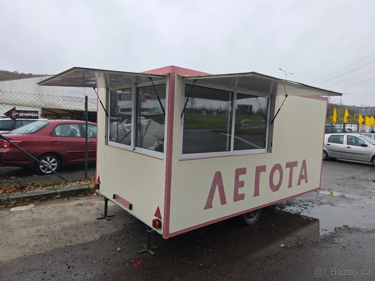 Prodám pojízdné občerstvení, 2x výklopné venkovní okenice, posuvná plastová okna, vozík do 750kg, stačí řidičský průkaz skupiny B, rozměry 4,3m x 2,3m