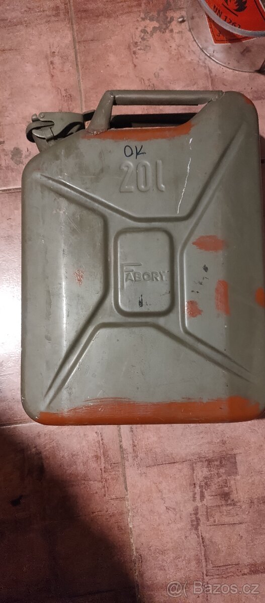 Prodám více kusů 20l plechových kanystrů, cena podle stavu od 100 Kč do 250 Kč