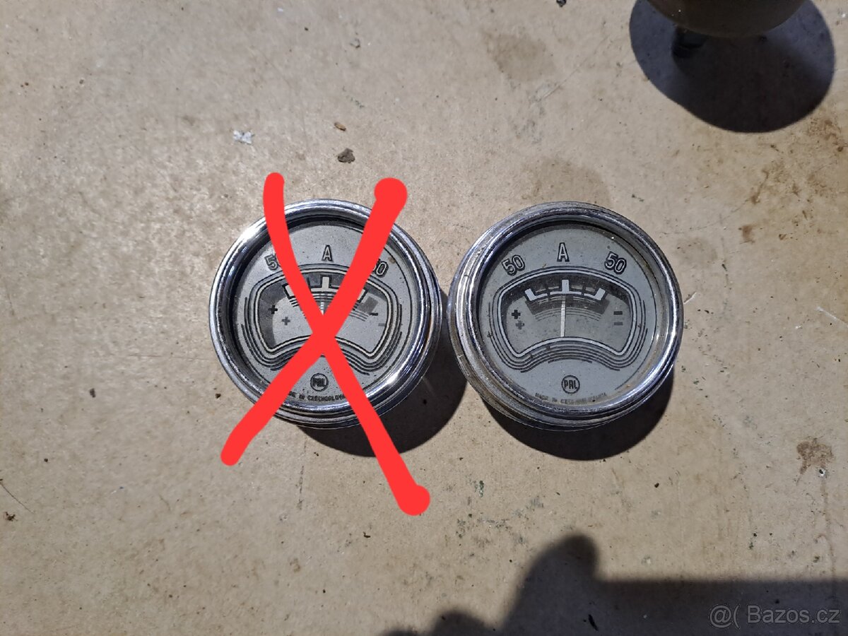 Prodám ampérmetr PAL, např. Praga V3S. Ručička lehce vychýlená.