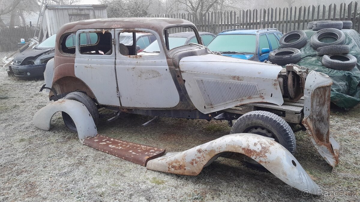 Vozidlo je demontované, určeno k celkové renovaci. Demontováno asi před dvaceti lety, v té době proběhla kompletní renovace podvozku. Demontované díly karoserie v pěkném stavu, již dávno základované. Kabina je v horším stavu, několik let venku, střecha by měla být otevřená, nyní je uzavřena plechem. Dva motory, jeden snad originál je rozebraný. Kompletnost vozidla asi nebude plných 100%. Nyní stojí venku. Cena k jednání po prohlídce. Je možné, že se jedná o jiný model vozidla, ale celkem odpovídá ilustrační fotografii.