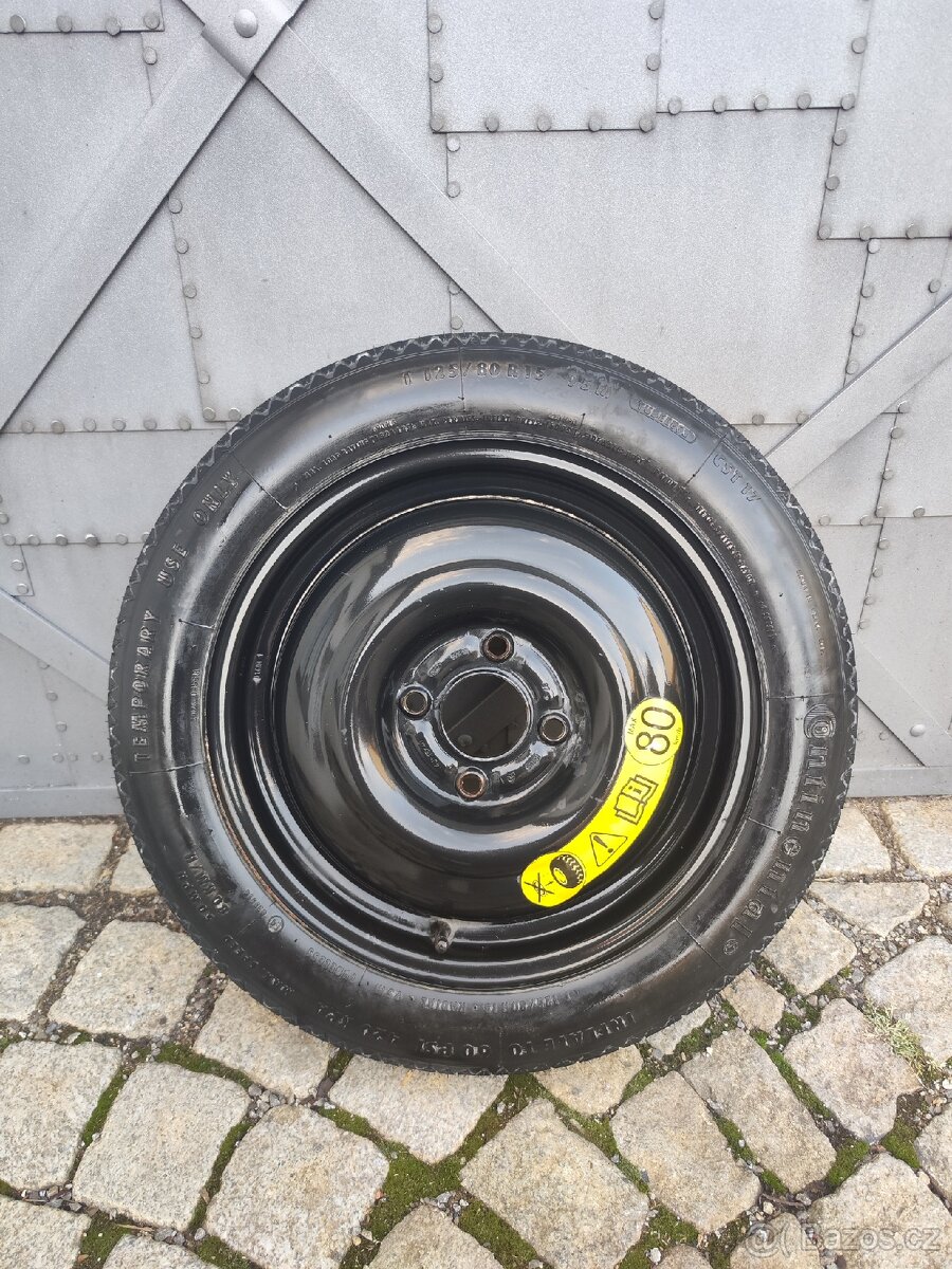 Dojezdové kolo - rezerva - 4x108 R15 - [15.12. 2025]Prodám dojezdové kolo 125/80 R15 vhodné např. pro Ford Focus rozteč 4x108 4J R15 ET40 95M. Pneu Michelin Tex.