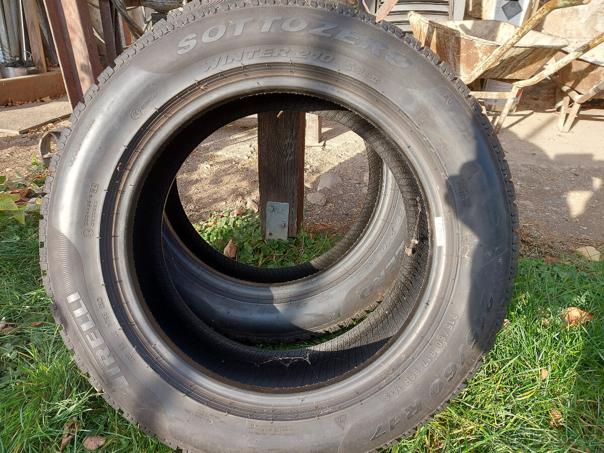 Prodám dvě zimní pneumatiky Pireli 215/60 R17, hezké, asi 70 % vzorku.