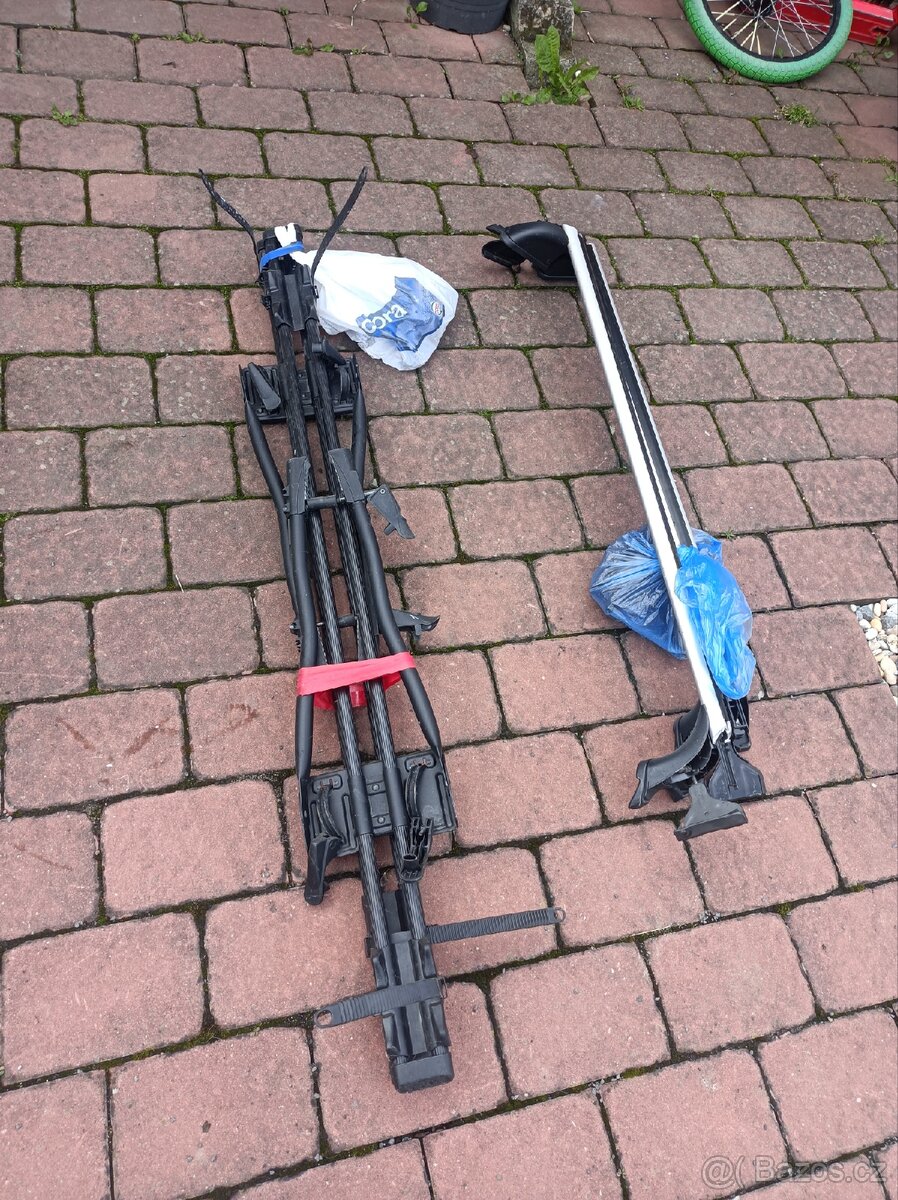 Střešní nosiče, příčníky+ nosiče kol, Dvě kola, příčníky pasují na Seat Altea, nosiče kol jsou univerzální.