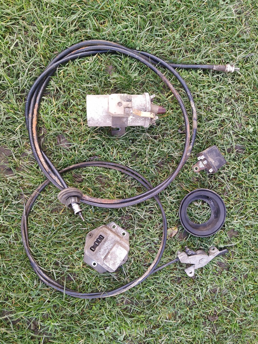 Inducka, relé, náhon tachometru, ovládání sytiče, guma hrdla nádrže, cena za vše na foto