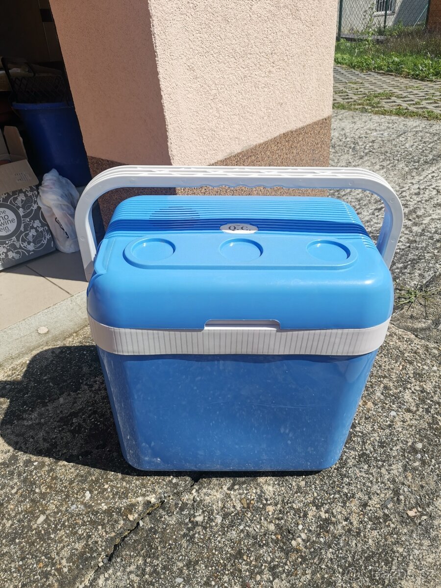 Přenosný chladící box s funkcí ohřevu. Lze napájet z 12V nebo 230V sítě. Chladící účinek je 10 až 13 stupňů Celsia pod okolní teplotu, má také funkci ohřevu s automatickým termostatem pro udržení teploty až do 65 stupňů Celsia. Ideální pro dlouhé cesty. Velmi dobrý stav - málo používaná.