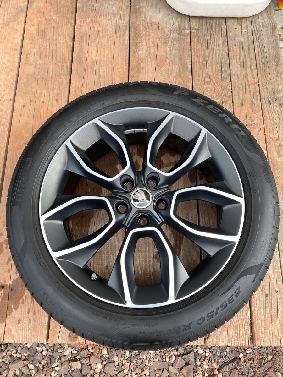 Prodám originální 19" kola označení Crater, Z vozu Škoda Kodiaq. 7Jx19H2 (7J, ET 43), ET43, 235/50 R19 pneu letní Pirelli P Zero (DOT 2622) 235/50/19. Mykitas, Vega. Pasují na všechny koncernové modely s roztečí 5x112 i Škoda Kodiaq - z důvodu podmínek inzertního serveru je zde všechny nemohu zmínit, ale sdělím Vám je po telefonu nebo emailem.