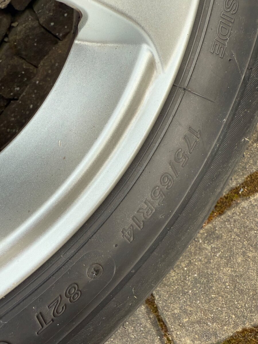 Prodám kola. Obuta byly na Citroen Saxo. Rozměr 175/65 R14. Disky 6Jx14H2 (DOTZ). Přidám 4Ks rozšiřovací podložky (20MM). Disky velmi pěkné, gumy jsou na dojetí.