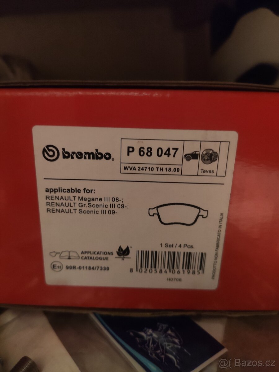 Sada předních brzdových destiček, Renault P68047 BREMBO Sada brzdových destiček, kotoučová brzda