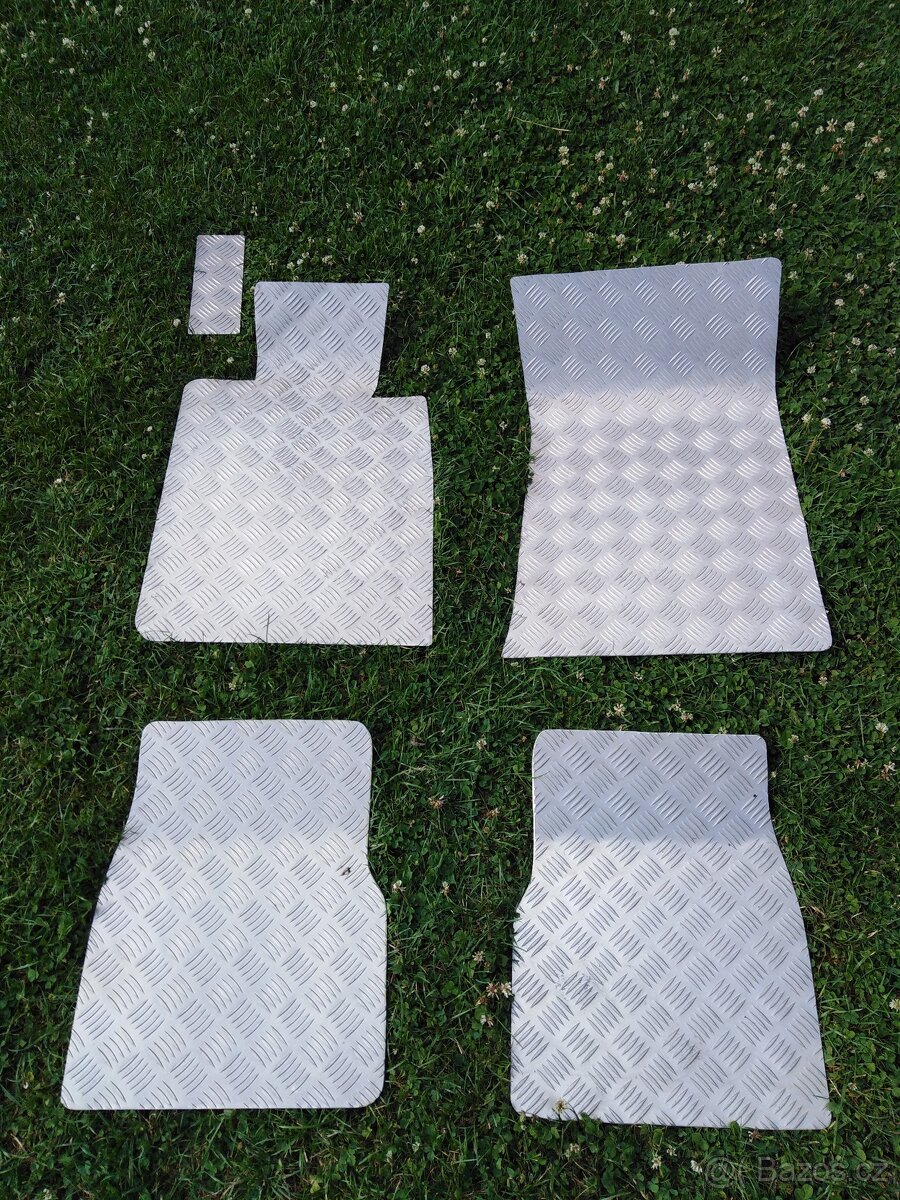 Koberce z rýhovaného hliníkového plechu do BMW e30. Zbyly mi po prodeji.