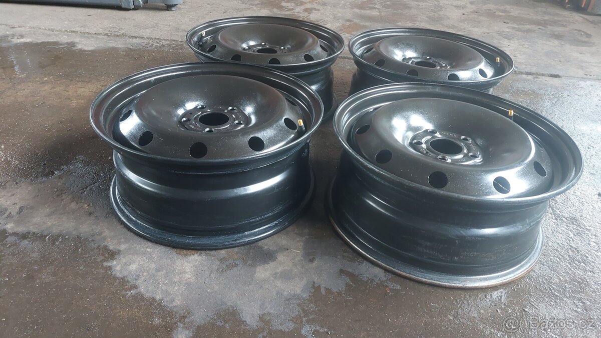 -Disky: plechové, rozteč 4x100, průměr 15”, rovné, v dobrém stavu