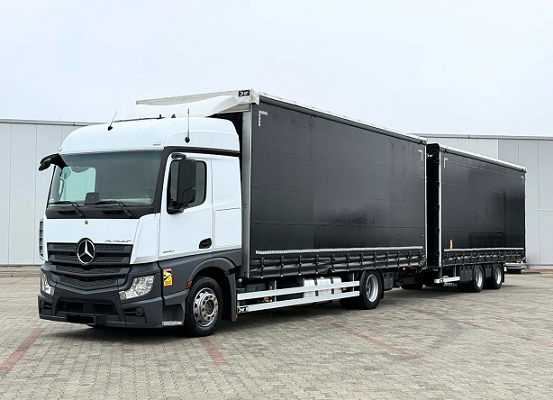první registrace 2022, stav tachometru 428000km, výkon motoru 400PS, Euro6, automatické řazení, kabina se střešním spojlerem, celková hmotnost 18000kg, užitečná hmotnost 7820kg, odpružení obou náprav vzduchové, valníková nástavba s posuvnými plachtami a střechou zvedací ve dvou polohách 7,74x2,48x3,01m, tandemový přívěs rok 2022, celková hmotnost 18000kg, užitečná hmotnost 13200kg, valníková nástravba s posuvnými plachtami a zvedací střechou 7,74x2,48x3,0m, souprava je průjezdná, ABS, ASR, EBS, centrální zamykání, el. ovládání oken a zrcátek, nastavitelný multifunkční volant, rádio s CD, lednice, nezávislé topení, klimatizace, asistent jízdy v pruhu, asistent bezpečné vzdálenosti, souprava je ve výborném stavu technicky i opticky