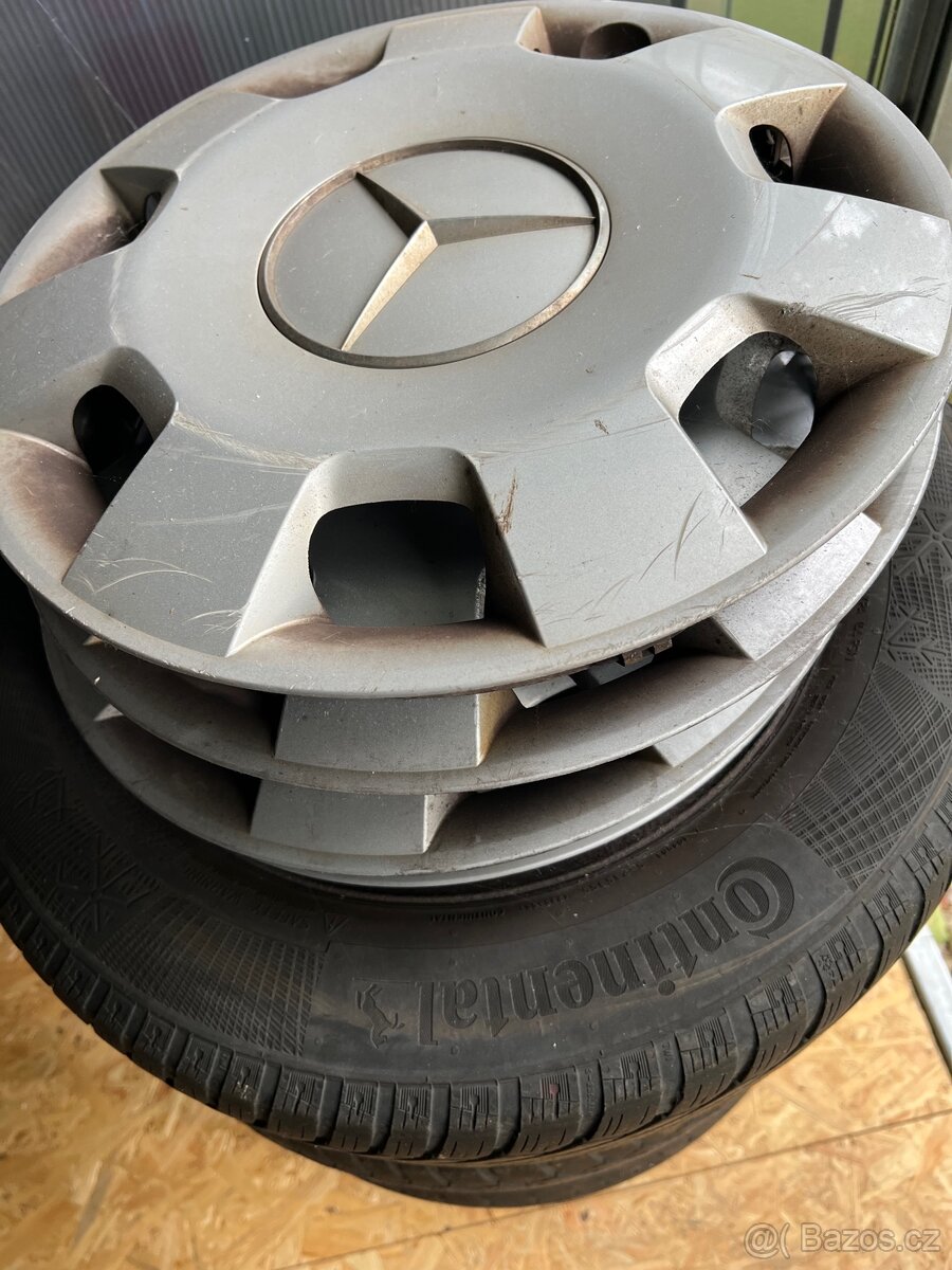Zimní pneu Continental + 5x112 plechy+ origo poklice R15 mercedes i jednotlivě, pneu na dojetí , komplet,cena za vše 1000
