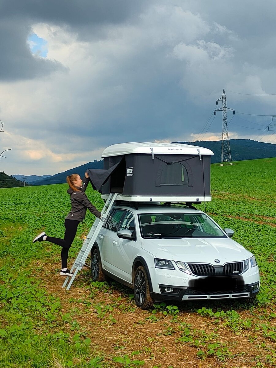 Nabízím k pronájmu autostan, který sedí na jakékoliv auto se střešními nosiči. Můžete tak pohodlně cestovat s ubytováním na střeše svého auta.