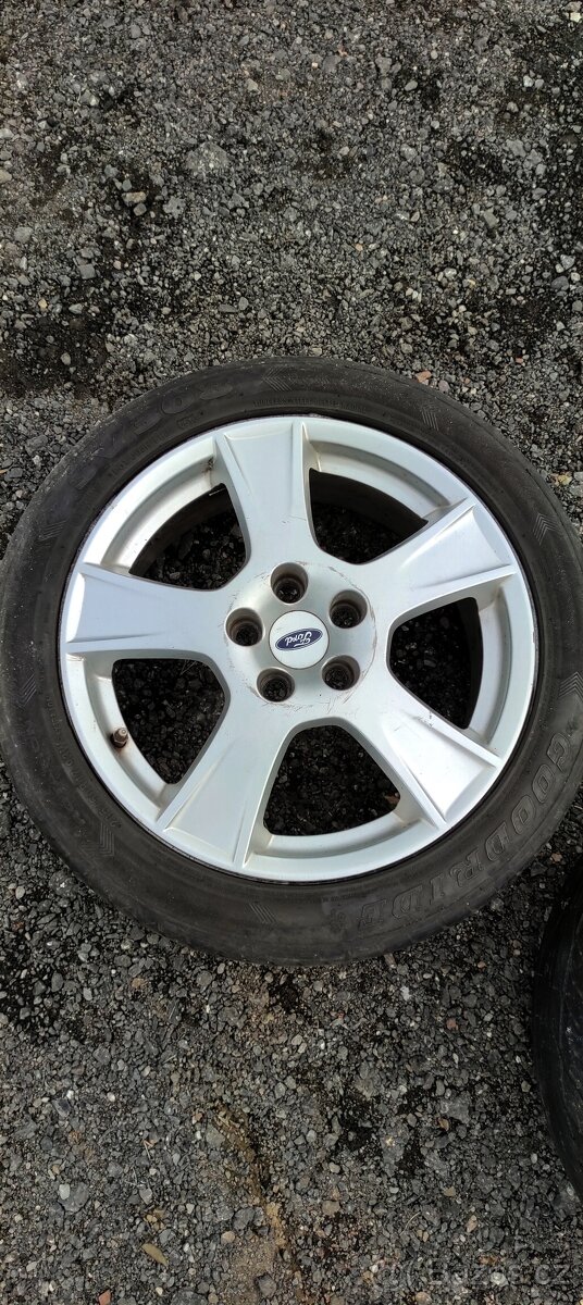 Prodám sadu Alu kol Ford. Rozteč 5×108, ET 52,5 , 6,5J×17""H2, středová díra 63,3 mm. Disky jsou rovné, místy poškrábané. Gumy max na dojetí