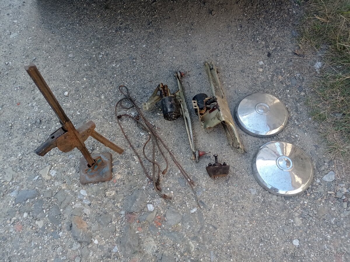 Prodám tyto starší náhradní díly, pravděpodobně na Moskvič, Volha,...atd. Nález na půdě. poklice-prodány, 2 ks kompletní motorky a převod stěračů, silentblok-prodán, pákový funkční hever a nějaké brzdové spojkové potrubí. Pouze vše dohromady.