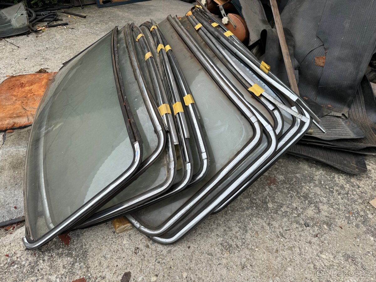 Prodám originální použité čelní a zadní okna Volha Gaz 24, okna kompletní včetně gumy a lišt chromových, cena za kompletní okno 750,-