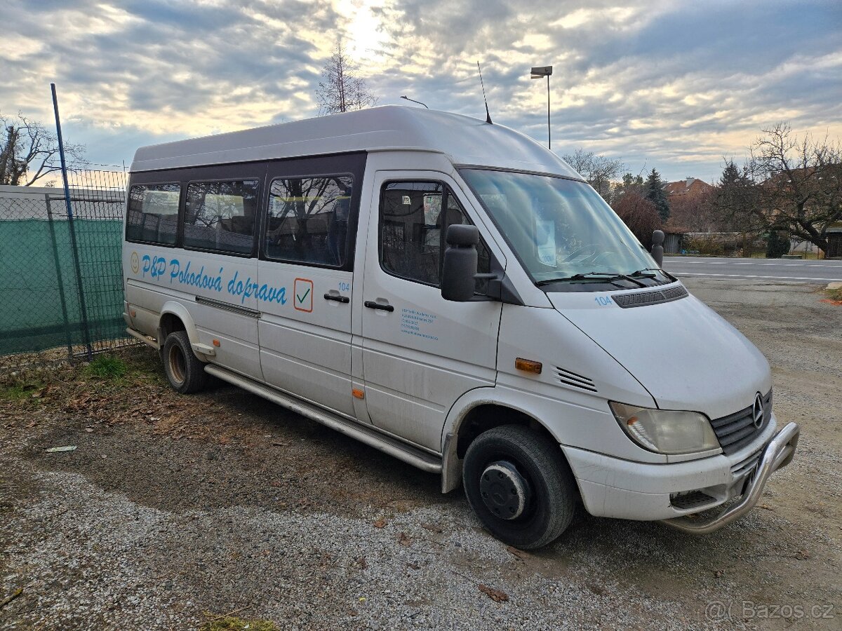 Prodáme Sprintera, motor 2,2 95kw. Stále v provozu, stk do kvetna 26. Sedadla s pásy. Slušná karoserie, jezdi pěkně, hezký interier, spolehlivé auto, letos delané brzdy. Klima nefunguje, koroze jednoho křídla zadních dveří kolem kliky. R.v 2004. Tažné.