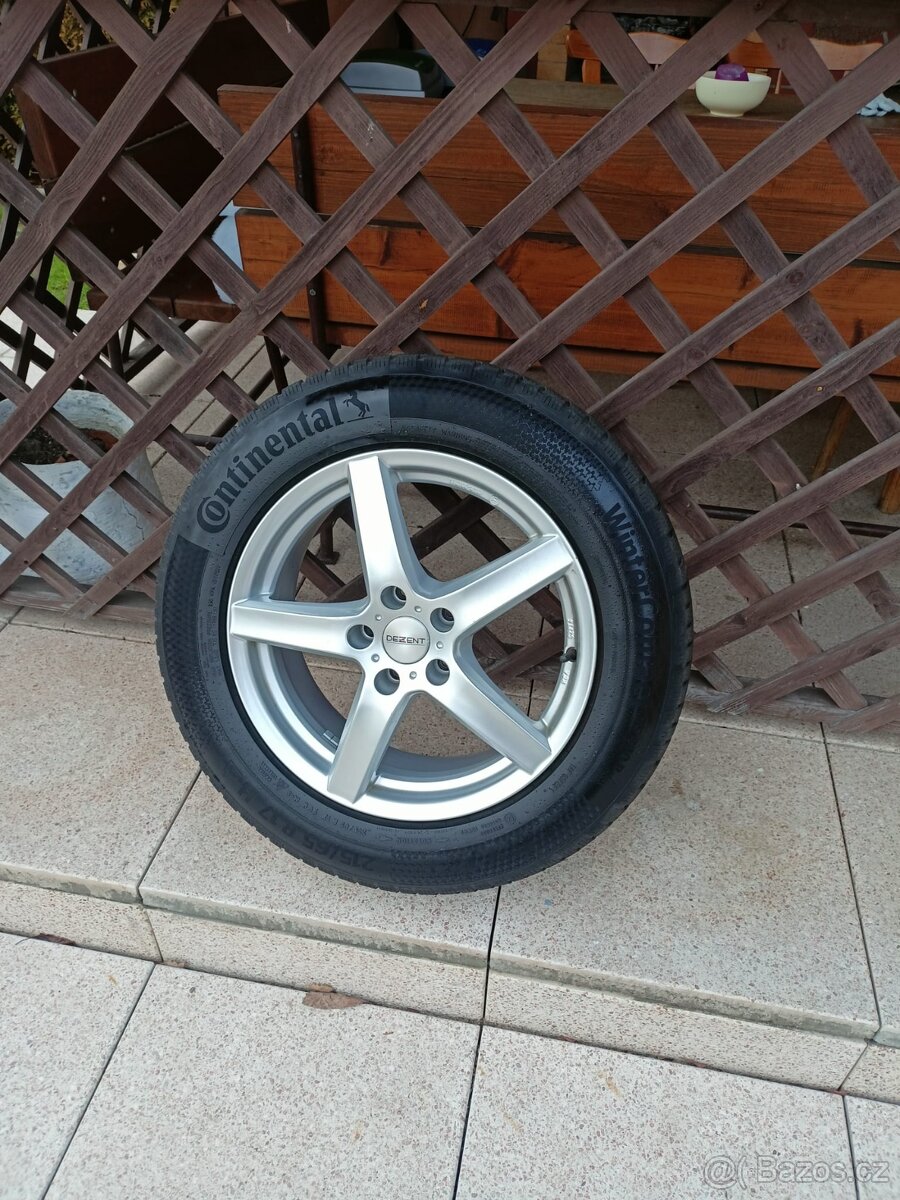 Prodám ALU kola 5x112 et40 215/65R17zimní pneu Continental Wintercontac vzorek 5.5-6mm cena 8500kč dohoda