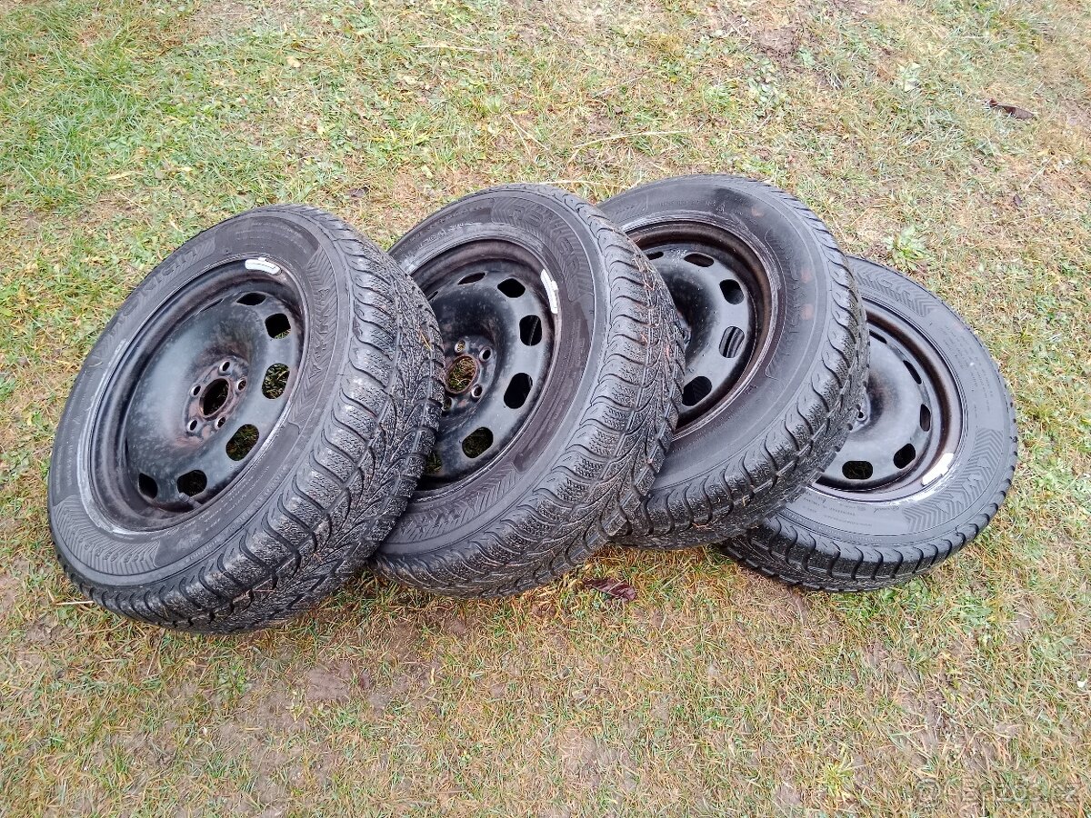 Prodám zimní pneu Nokian, vzorek cca 5mm, zachovalé plechové disky 5x100. Byli na Škoda Octavia I. V listopadu/2025 vyvážené, stačí nasadit. Ne sms