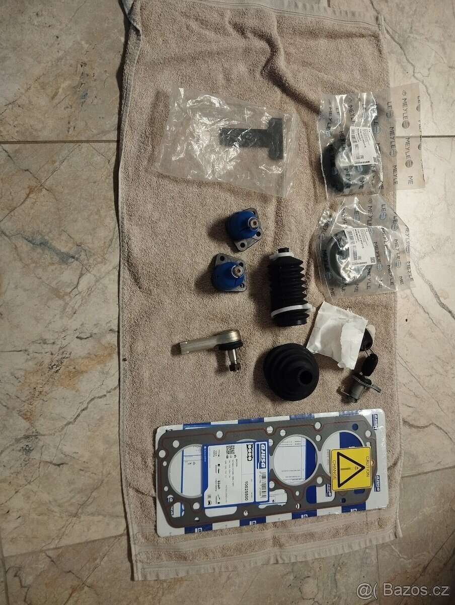 Těsnění po hlavou 1.3 50 kW AJUSA, zámek dveří klíčem, čep řízení, kulový čep, manžeta poloosy, manžeta řízení, uložení 2 x předních tlumičů,