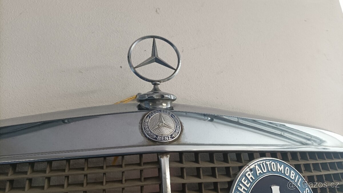 Prodám masku Mercedes. Sloužila jako dekorace v garáži.Doplněn o originál plakety autoklubů Kompletní zachovalý stav.Maska 5500 kč , znak asi W108, W109, W110, W112 cena 1500 kč , plakety autoklubů 1900 kč kus.