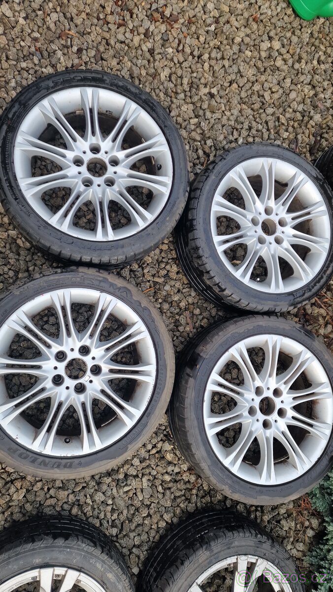 R18 Alu hliníkové disky elektrony z provozu BMW Styling M-packet na rychlo opláchnuté, zadní části jsou ještě trošku od brzd takže budou chtít trošku péče i když to stejně nikdo nevidí. Gumy na vyhoz. Osobně Havířov (pište na 6o5 813 676)