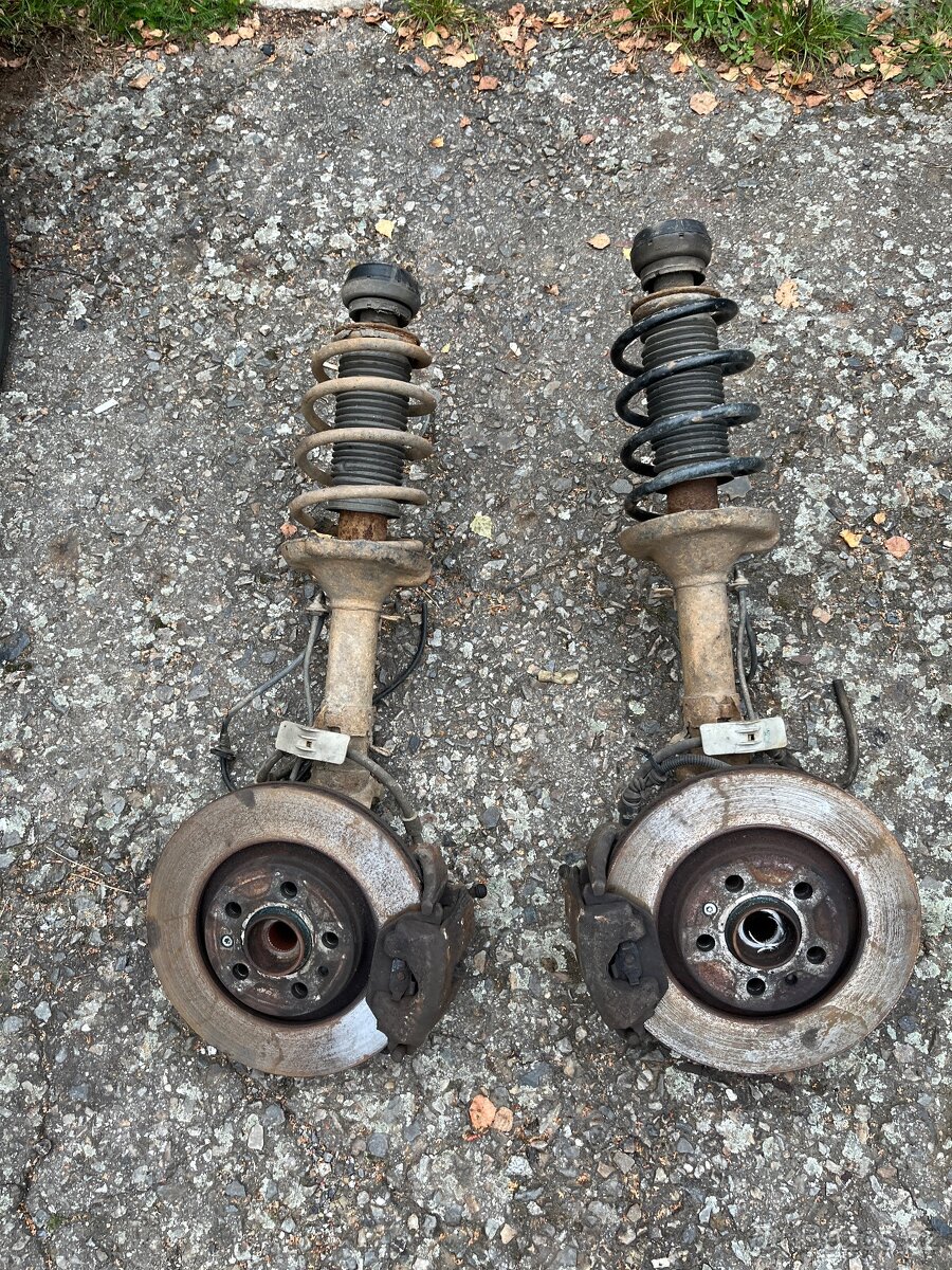 Prodám obě přední, kompletní těhlice včetně tlumičů, pružin, brzd atd… vyndáno z pojízdného vozu. Cena za komplet obě. Brzdy jsou ok, ještě něco najedou. Kontakt nejlépe na whatsapp nebo meil, popř volat po 15 hod.