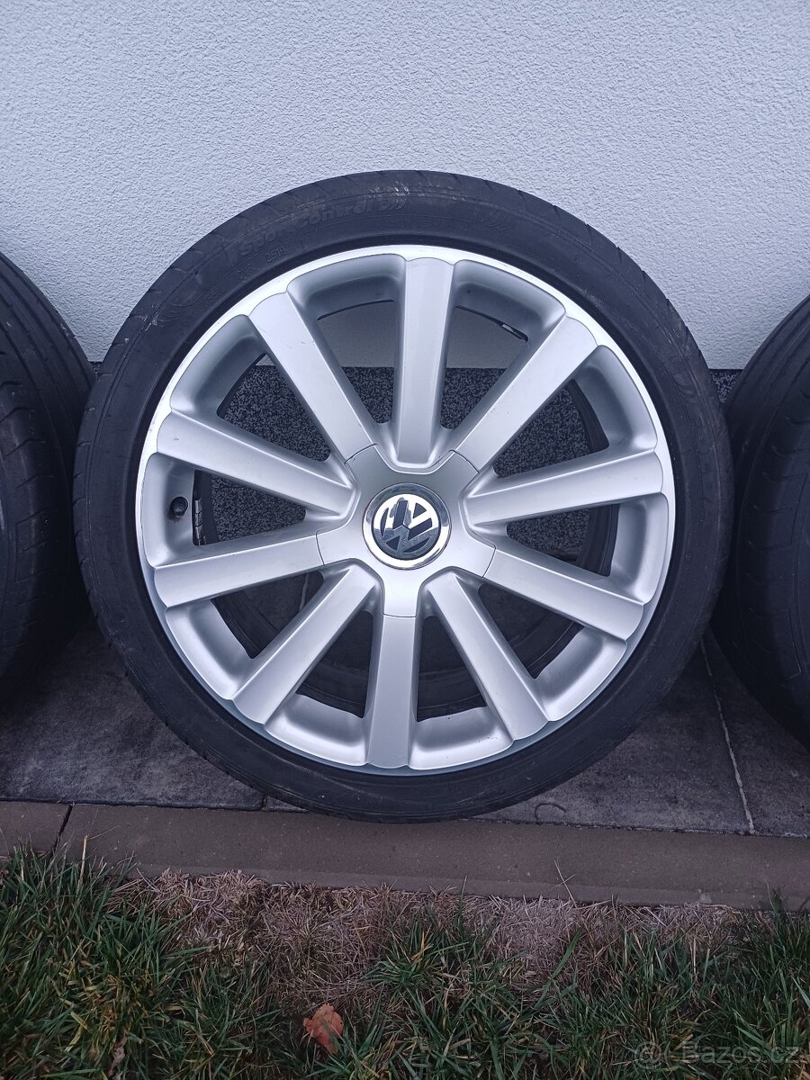 Prodám originál alu kola VW 18", typ Omanyt o rozměrech 7,5x18 ET49, rozteč 5x112. Kola jsou v původním pěkném stavu, nelakovaná, rovná s minimem kosmetických vad.