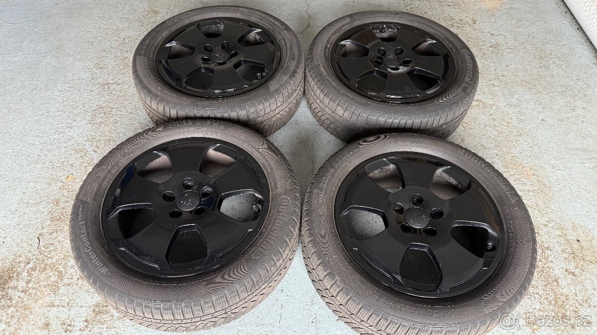 Original ALU kola Audi se zimními pneumatikami 17' (na dojetí, vzorek cca 4 mm). Rozteč 5x112, ET 48, 6Jx17H2, Používané na Škoda Karoq.