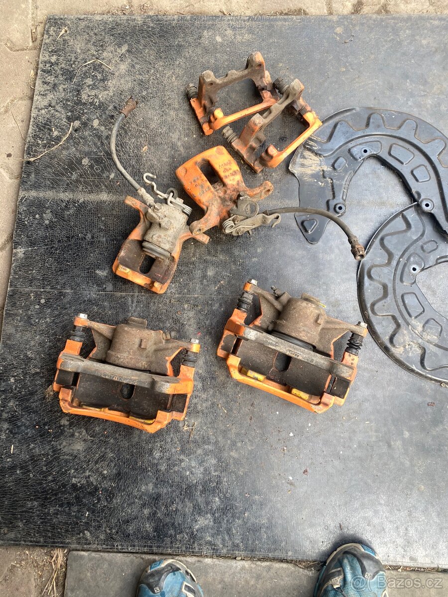 Prodám přední brzdové třmeny levý i pravý z držáky na průměr kotouče 312 mm. Zadní brzdové třmeny i s držáky na průměr kotouče 272 mm taky levy i pravý.Brzdy jsou ze Škody Octavie 3 combi 2,0tdi 135 kw