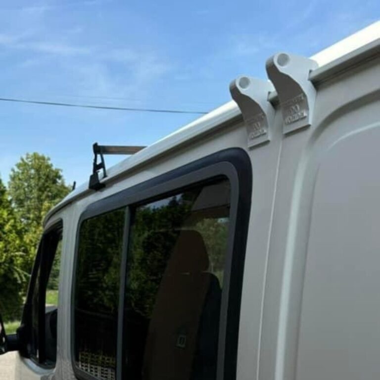 Držák na Ford Transit (MK5–MK7), který vám pomůže natáhnout plachtu, sušit prádlo nebo si jen vytvořit stín pod širým nebem.