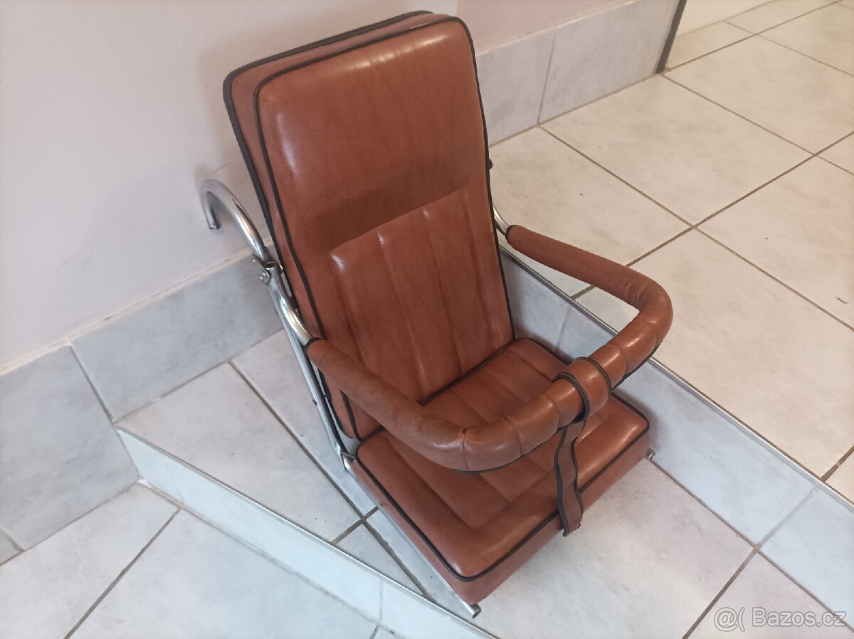 Prodám retro dětskou autosedačku 60-70 léta. Velmi zachovalá akorát se musí opravit patent viz foto.