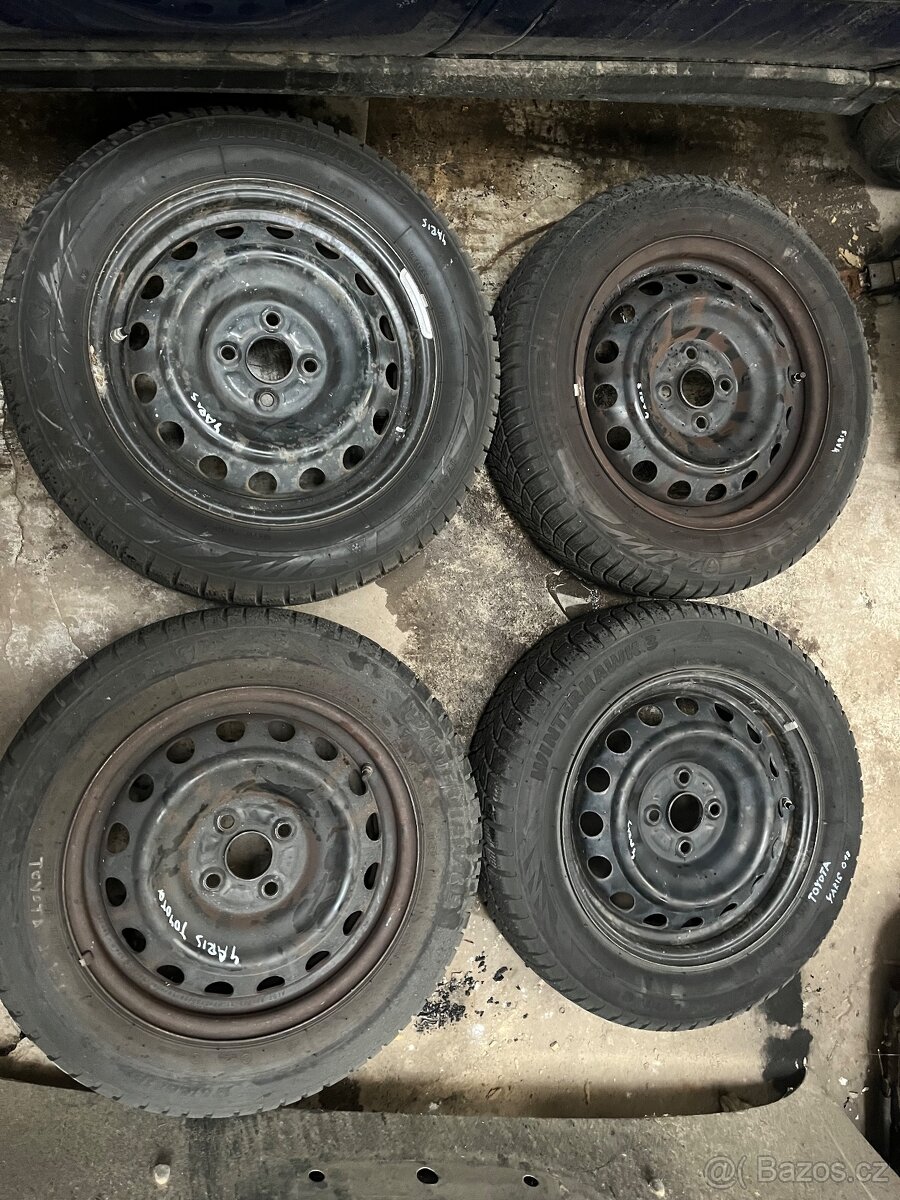 Nabízím k prodeji sadu zimních kol na Toyota Yaris rozměr pneu 175/65-15 vzorek90% cena za sadu
