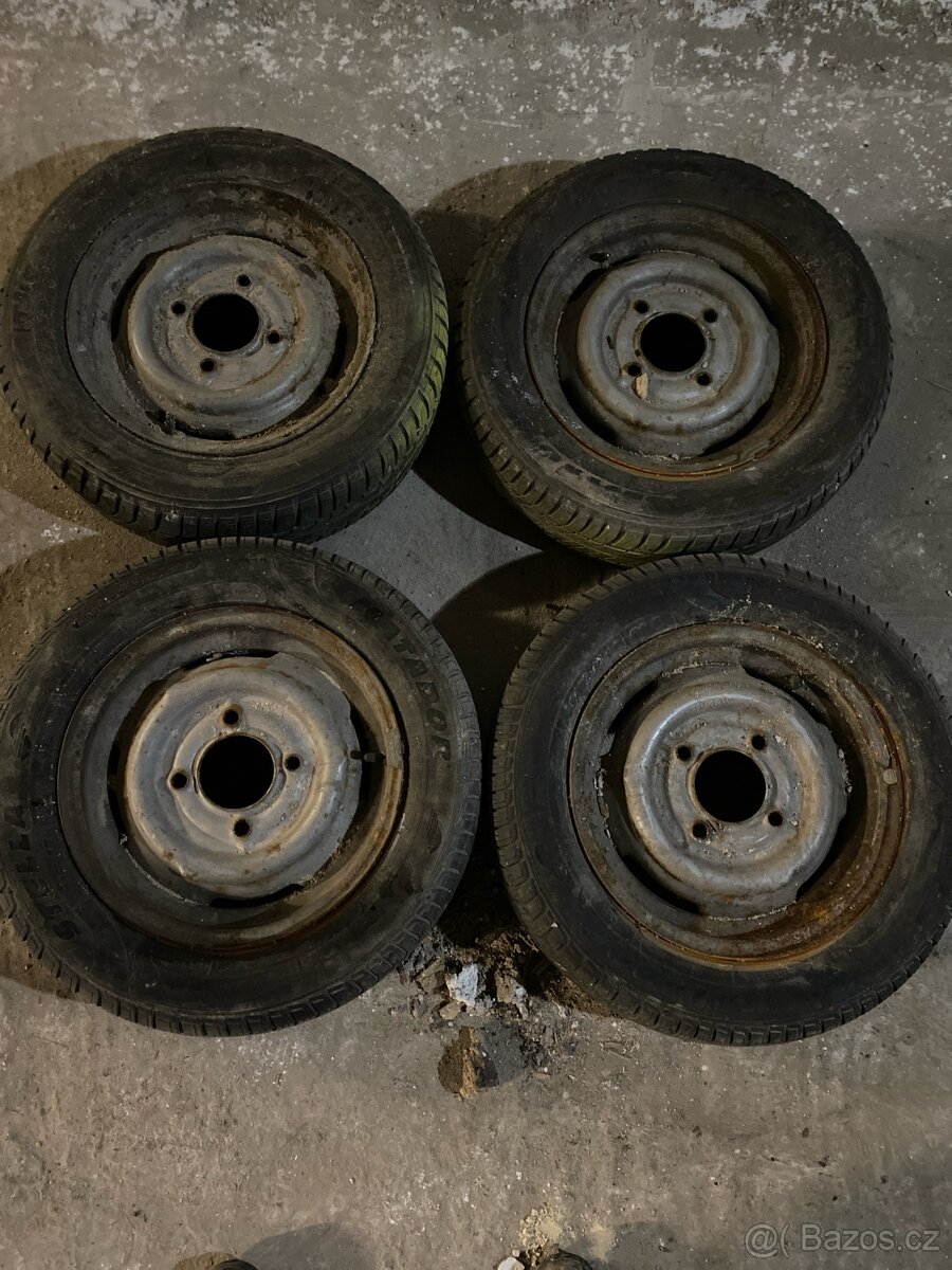 Prodám kola na starou škodovku, nejspíš 100 nebo 1000mb, staré pneu. 4kusy, R14, cena komplet 800kč