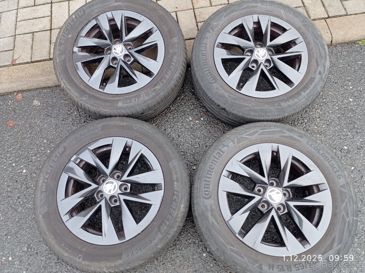 LETNI/ZIMNI al 16" ANTIA ORIGINAL SKODA RAPID, FABIA III - [23.12. 2025]Prodám kompletní LETNI/ZIMNI al kola 16" ANTIA ORIGINAL SKODA RAPID, FABIA III a další koncern s 5x100, 7jx16, et 46, číslo 5JA601025B, disky kosmetika z provozu jinak ok, 2x VELMI PEKNE LETNJ pneu MATADOR Hectorra 3, 215/45/16, 90V, Dot 2022, vzorek ...