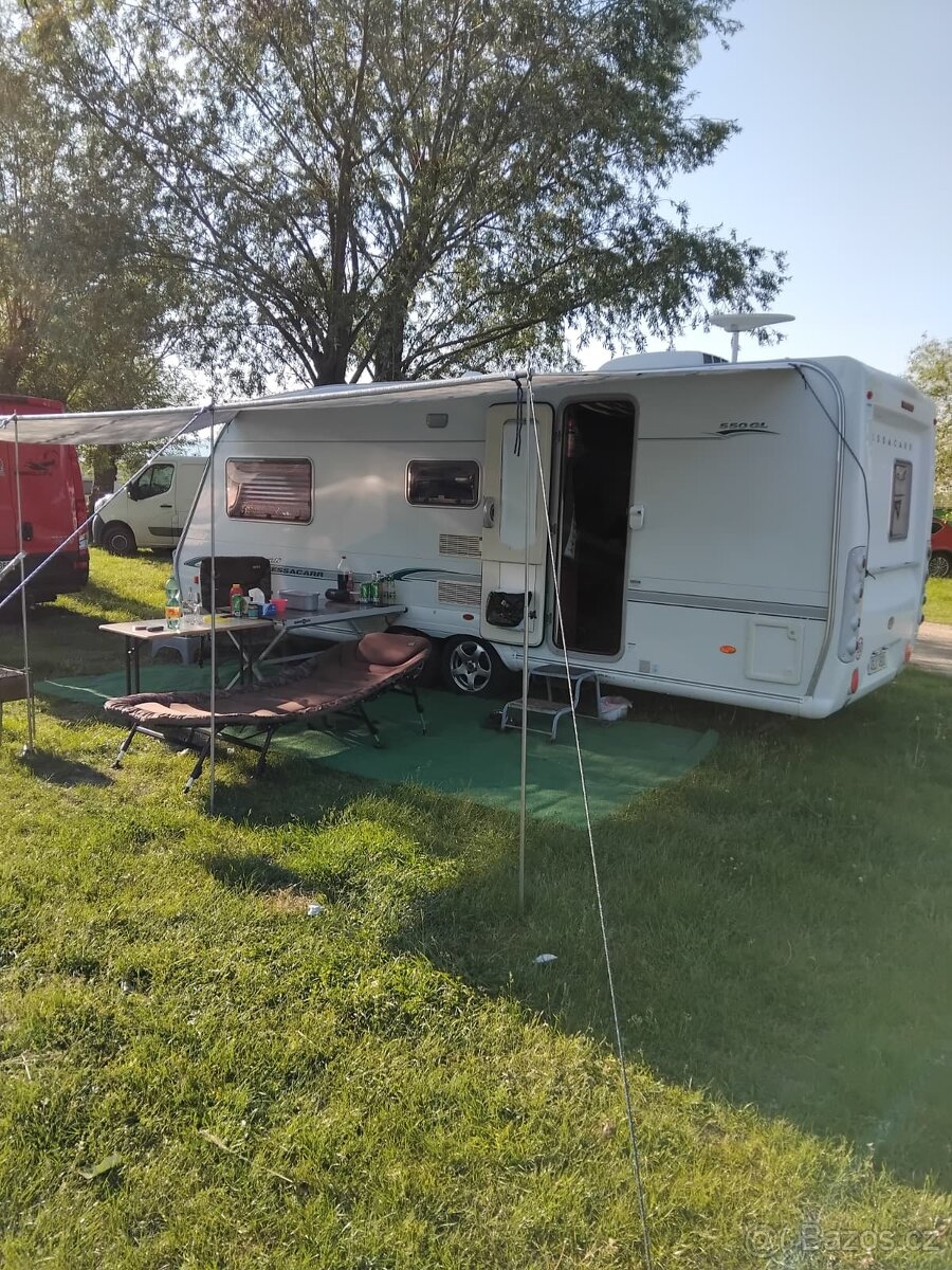 Rok výroby 2010, nekuřácký, velmi dobře vybavený. Koberce, automatický satelit, klimatizace, el. stropní okno, TV anténa, rádio anténa + rádio + CD, ukazatel stavu baterie a vody, samostatný sprchový box + WC, mikrovlnná trouba, digestoř, kombinovaný sporák el. + plyn, lednice trojkombinace, el. + plynový bojler na teplou vodu, topení ALDE na plyn + 220 V, potenciometr na stmívače a zesilovač světel uvnitř karavanu, skrytý trezor, zabudovaná nádrž na vodu, včetně čerpadla + venkovní čerpadlo do barelu s vodou, plynová láhev, detektor kouře a plynu, schůdek do karavanu, venkovní letní přístřešek 5 × 3 m, rezerva (rezervní kolo) pod karavanem, stolek venkovní, venkovní vývod na plyn ke grilu, venkovní vývod TV antény, přídavný bezpečnostní zámek vstupních dveří, zakrývací plachta zimní, vše funkční a v dobrém stavu.