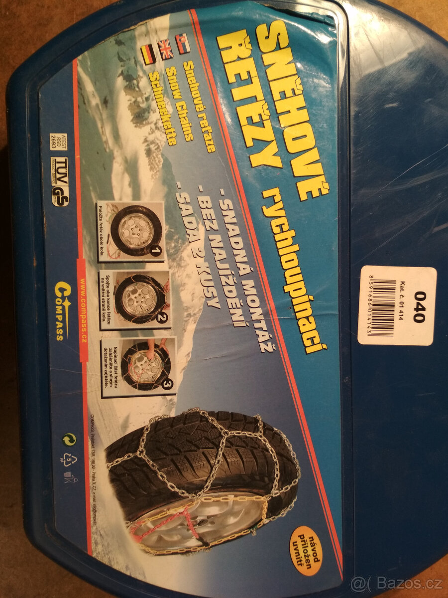 sněhové řetězy na automobil - [24.12. 2025]Prodám sněhové řetězy na osobní automobil viz.foto. Řetězy jsou použité a na článcích řetězu je patrná koroze. Řetězy jsou však pevné a použitelné.