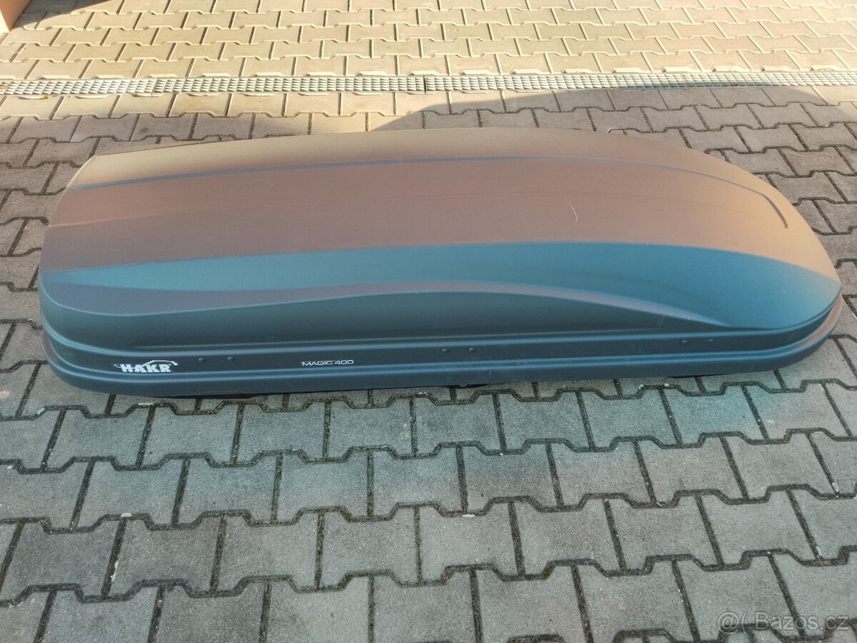 Střešní Box Hakr Magic 400, oboustranné otvírání, 2 klíče, Střešní Rakev na lyže,