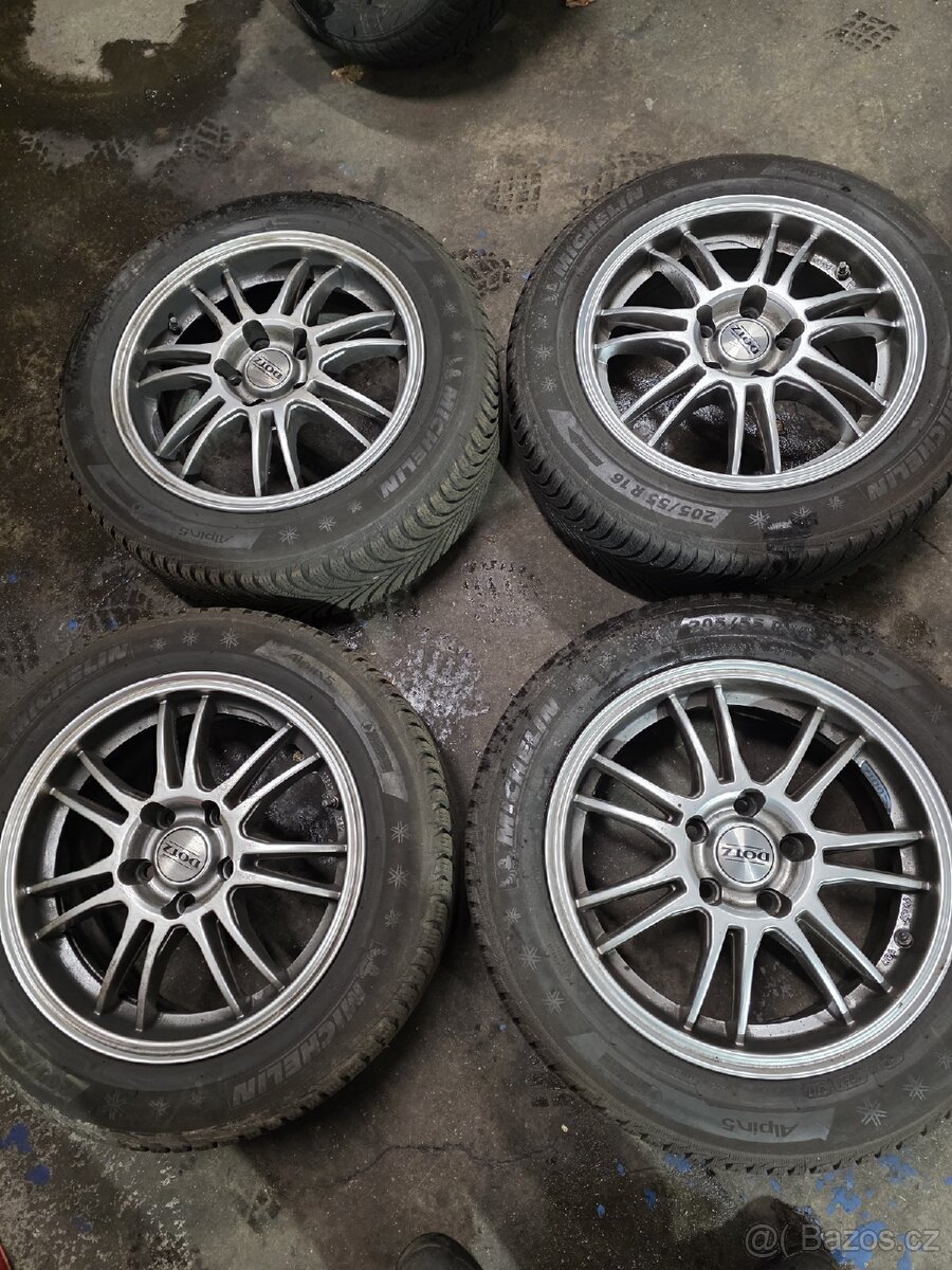 Prodám komplet sadu Dotz 7JX16 H2 ET 48, 5x112 (bylo to na Mercedes benzín B rok 2818) a Michelin Alpin 205/55R16 91H . Pěkné, neodřené, pneumatiky cca 7mm. Vyvážené.