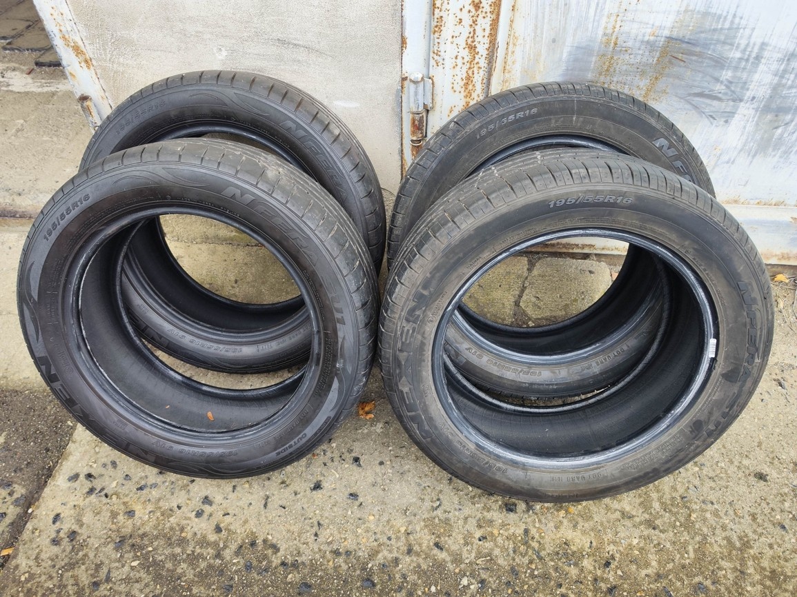 Prodám zánovní sadu 16"letních pneumatik Nexen N'Fera SU1 195/55 R16 91V, DOT 3820(38.týden roku 2020), krátce jeté a vymněny za celoroční, 2x7mm, 2x6,5mm.