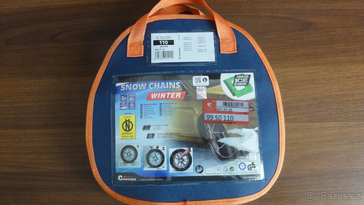 Prodám nové sněhové řetězy značky Compass na Audi A4 Avant combi a jiné vozy dle specifikace na přiložené fotografii.