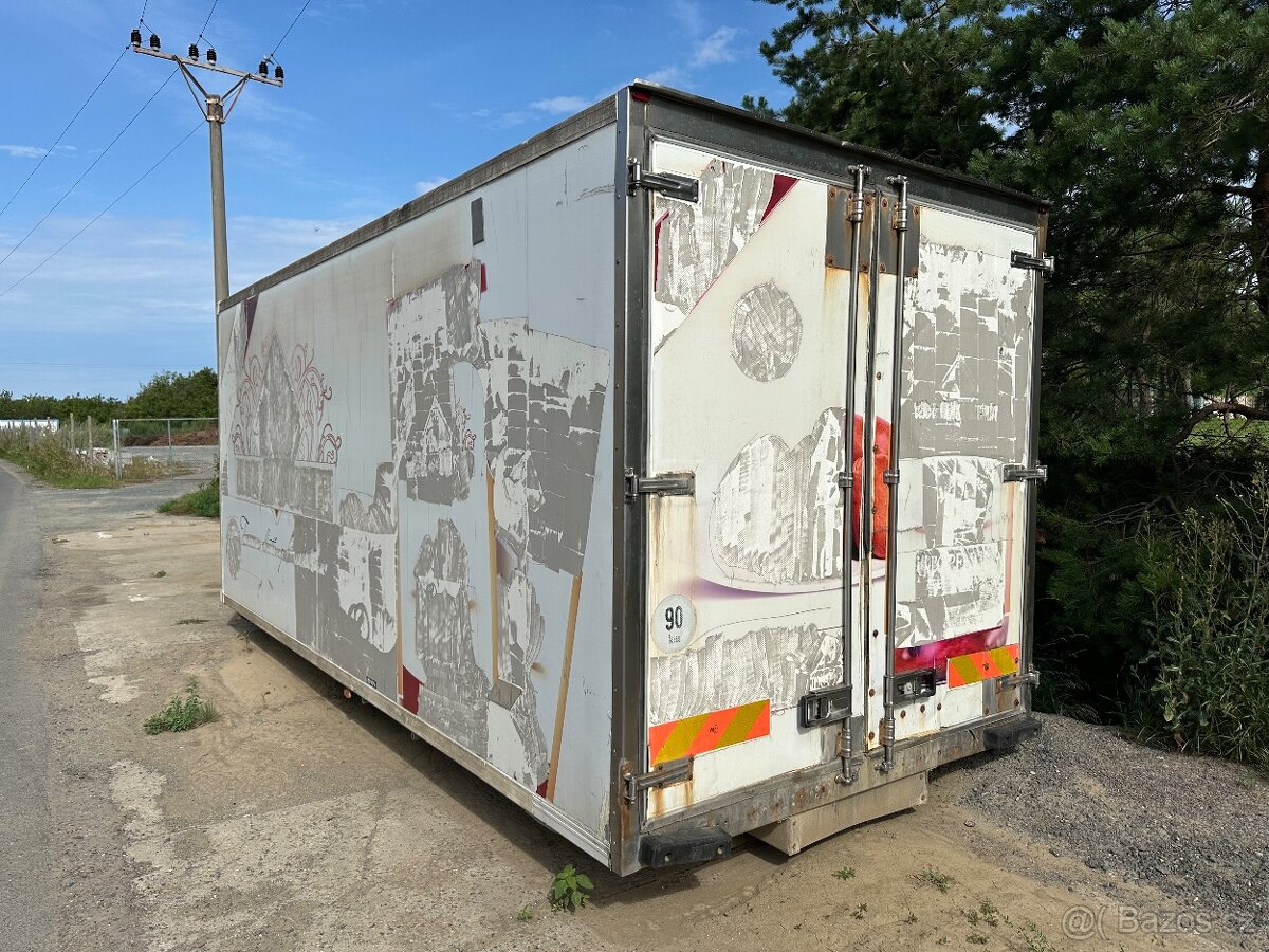 Nerezová konstrukce nástavby, stěny izolované pur panely o síle 10cm. Protiskluzová hliníková podlaha. Boční vstup a zadní dvoukřídlé dveře. Možno předělit příčkou a vytvořit dvě uzavřené místnosti.