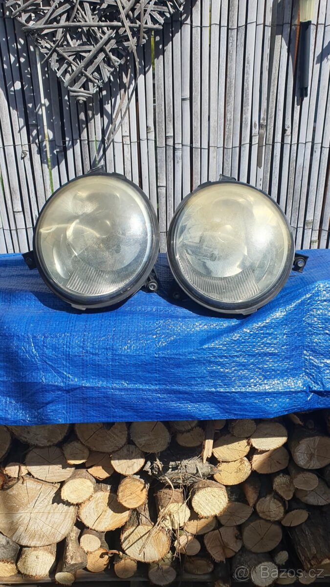 Prodám přední světla na Volkswagen Lupo. Všechny držáky ok. Pouze na jednom světle chybí držák krytky žárovky viz foto.