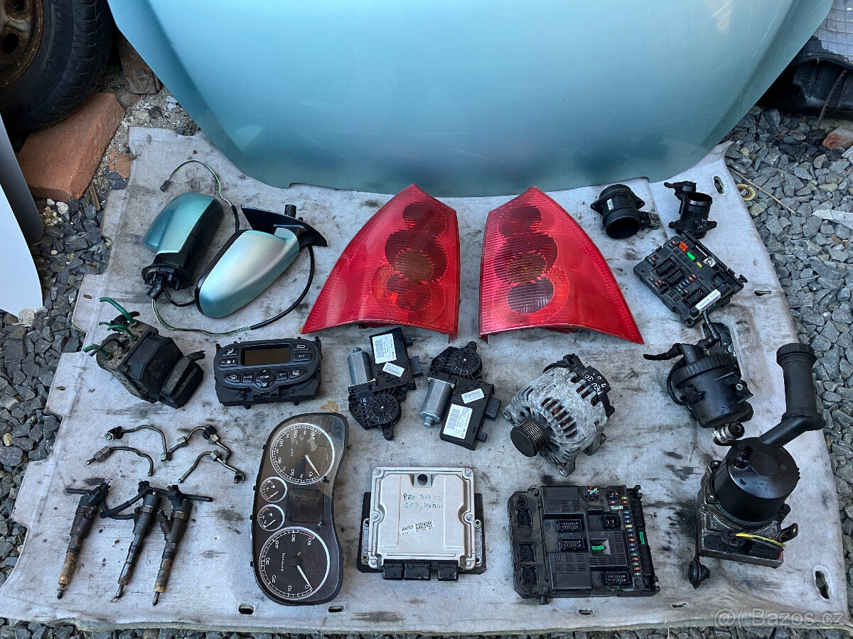 Díly Peugeot 307 kombi 2.0 diesel r.v. 2002: kapota, zadní světlo, el. zrcátko, alternátor 9646321780 Valeo CL15, čerpadlo serva 9645102580, roleta do kufru 3700031112, přední nárazník, motorek stahovačky – přední 9634457480 9634457580, ABS Bosch 0265950084, budíky 9636708880, vstřikovač 9641742880, ovládání topení a klimy 96430991 XT, palivový filtr 9642105180 9638780280, váha vzduchu 9629471080 9WK9, řídicí jednotka 9647472780 Bosch 0281011081, jednotka 9636760580, filtrbox, intercooler. Posílám poštou nebo zásilkovnou po platbě předem.