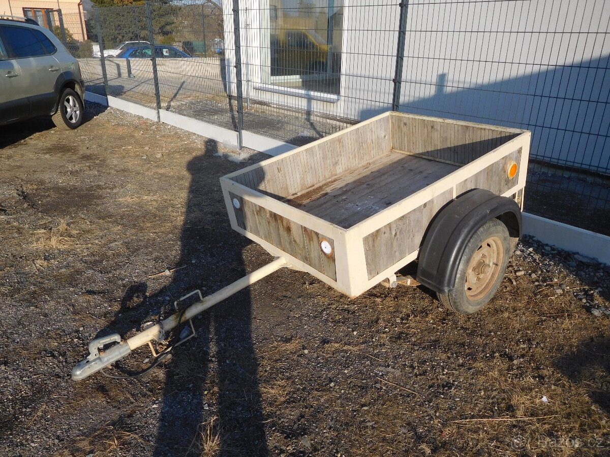 Nákladní přívěsný vozík jednoosý, Vlastní výroba, r.v. 1982, Ložná plocha ( mm ): délka 1500, šířka 1100. Celkové rozměry ( mm ): délka 2600, šířka 1500, výška 780. Hmotnost: pohotovostní 140 kg, užitečná vč. obsluhy 260 kg, celková 400. STK do: 2/2029 Vozík ve velmi dobrém stavu, po celou dobu parkován v suché garáži