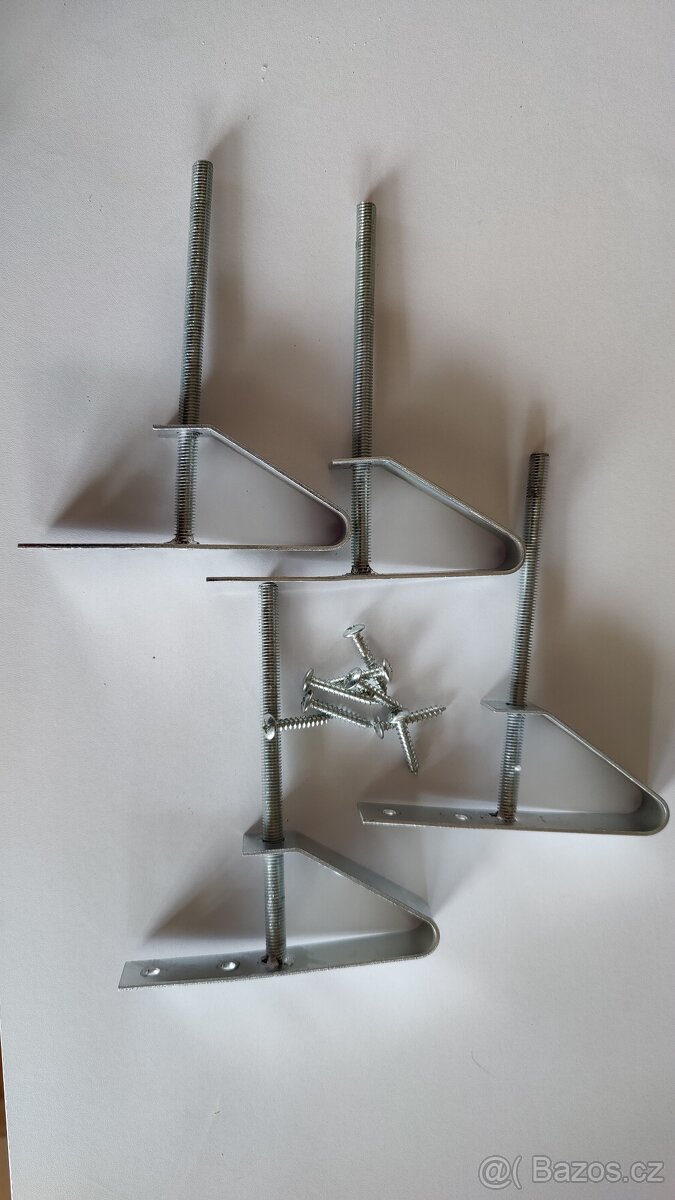 Čtyři držáky kol (disk + pneu) pro umístění na zeď. Šrouby na namontování na zeď jsou součástí (včetně matky, která není na foto).