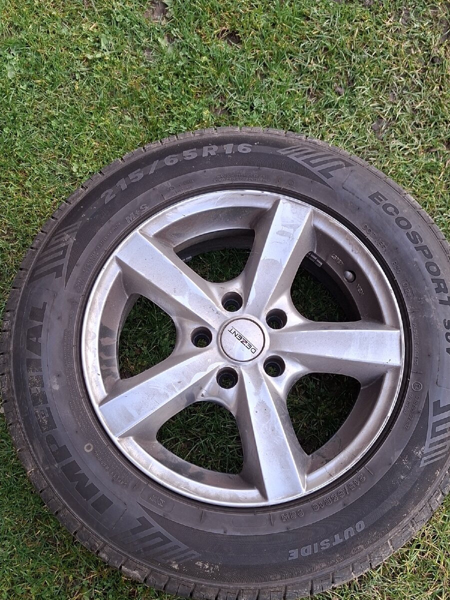 Letní kola s disky na Kia sportage 2.0, nebo Hyundai tuscon(2004-2010). 4 kusy. Použité 1 sezónu. Cena za kus 2000kč nebo celek za 7000kč.