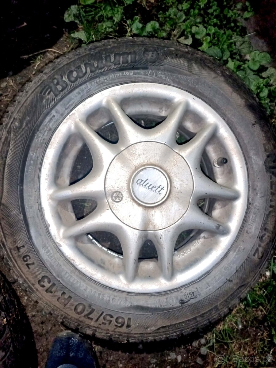 Disky Aluett s pneu 165/70 R13. Mírně poškrábané.