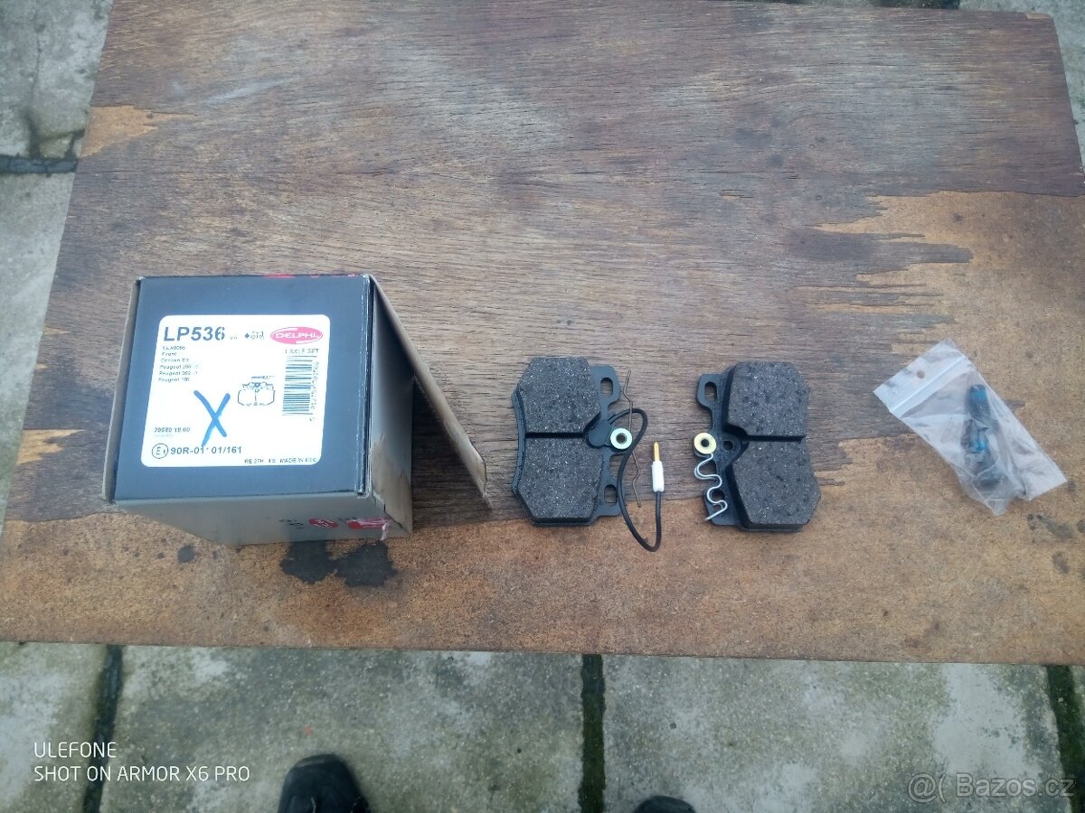 Prodám nové brzdové destičky na Peugeot jeden pár,typ viz foto krabice,cena 200,-kč.